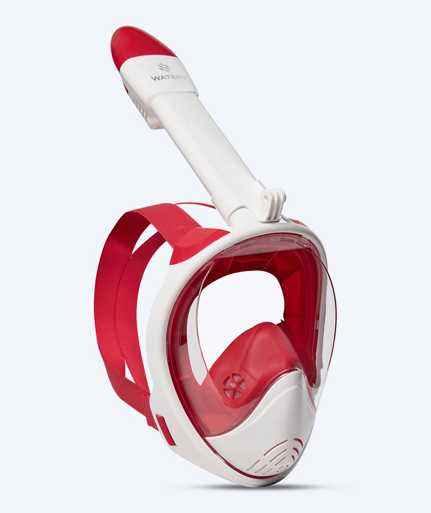 Med Watery Full Face masken er barnet udstyret med en dykkermaske der kombinerer snorkel og maske i en samlet løsning. Vi har fokuseret på at masken skal være behagelig at have på, hvorfor den dækker hele dit ansigt - samtidig med at den holder tæt.